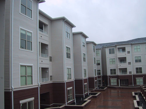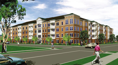 One hundred eight units of Active Adult condominiums arranged in a light steel framed, 4-story building over 2-levels parking garage.